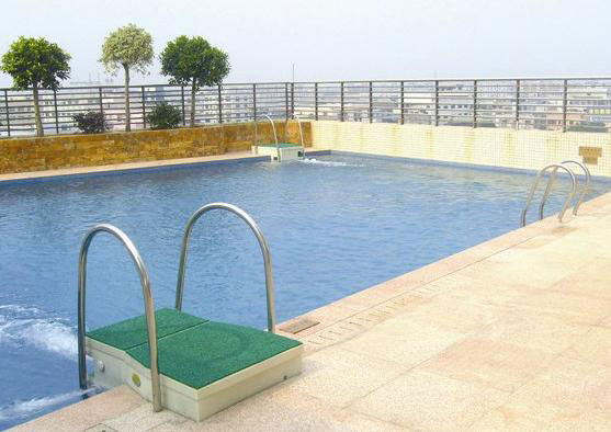 傳統式:傳統的不銹鋼扶梯和給水口都是游泳池的一道風景線。