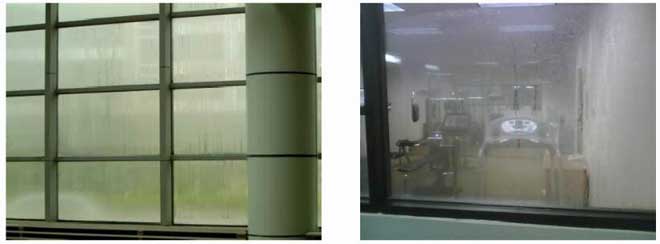 室內游泳池由于池水表面蒸發容易使室內充滿潮濕含氯的空氣,當潮濕含氯的空氣遇到較冷物體就會凝結出冷凝水,由于冷凝水含有大量的氯,將會腐蝕所接觸到的建筑物,如使裝修面層生銹、起鼓、掉漆等,嚴重的時候回因腐蝕到受力鋼筋,使之抗拉強度降低而斷裂,造成房屋垮塌等危險。這情況在發達國家增發生過多次。